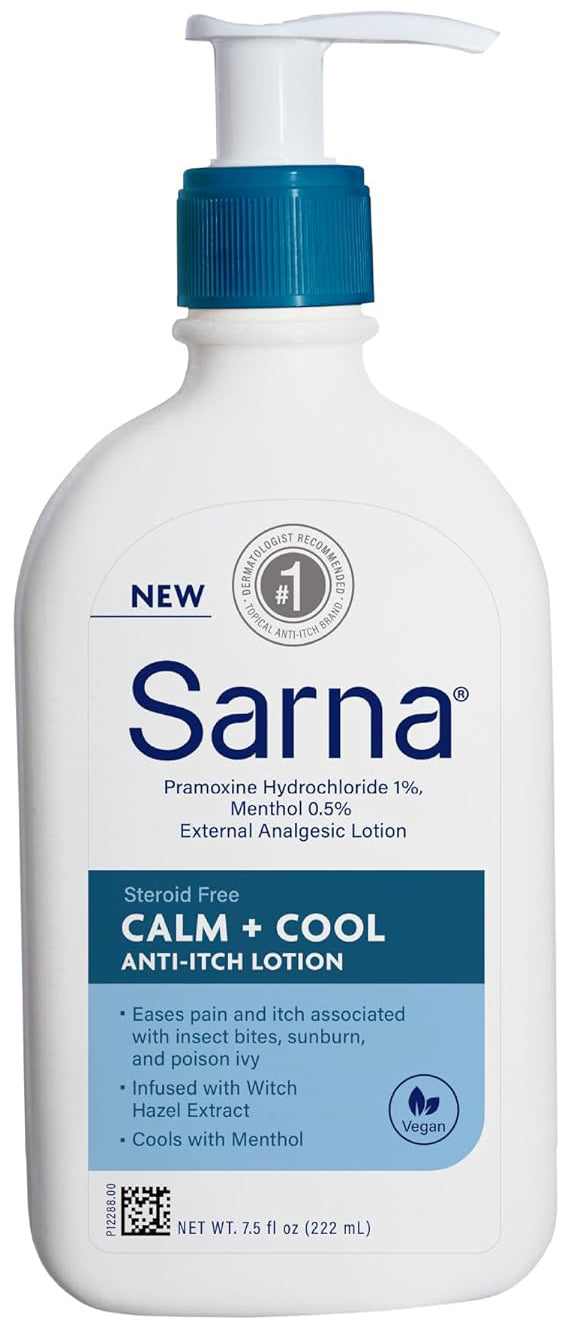 PUPPP Rash Relief: Sarna – Cool + Calm Anti-Itch Lotion is a dermatologist-recommended formula that provides fast, soothing relief from the intense itching and irritation caused by the PUPPP rash. Its cooling menthol helps calm inflamed skin on contact, while its gentle, fragrance-free formula makes it safe for sensitive pregnancy and postpartum skin.